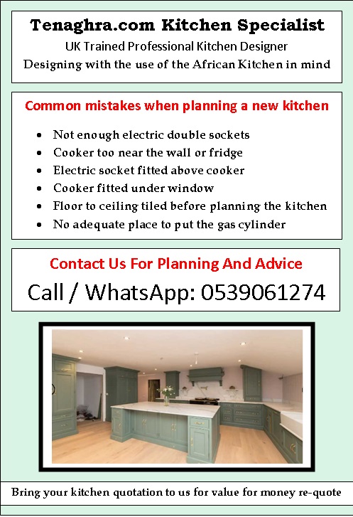 | We will design, supply and professionally fit the kitchen. For projects in Ghana we will arrange door to door shipping then come over to professionally install the kitchen when it arrives in Ghana. |